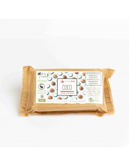 Jabón Artesanal Coco - 100% Natural. Libre de aceite de palma y sulfatos. Un remanso de aromaterapia que evoca felicidad, purificación y bienestar femenino.