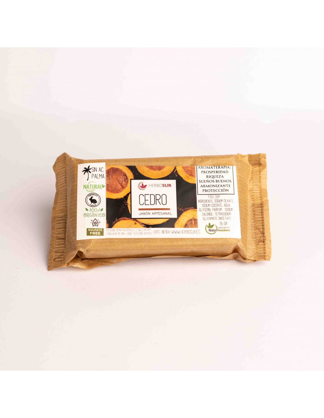 Jabón Aroma Cedro - Artesanal y Orgánico. Sin aceite de palma ni sulfatos. Aromaterapia para prosperidad, sueños buenos y protección. Crea un ambiente armonizante.